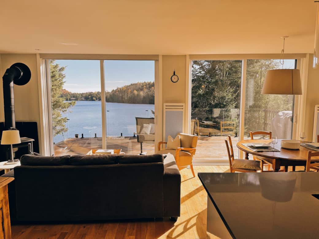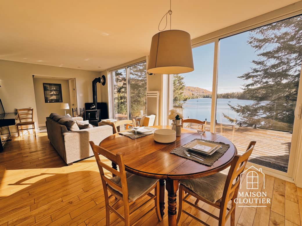 Located in Sainte-Adolphe-d’Howard, in the heart of the Laurentians, this modern lakeside chalet welcomes you for an escape where calm, light, and nature come together. Just steps from the water, this elegant retreat for up to 4 guests features two private suites with full bathrooms, plus an additional powder room — ensuring complete privacy for everyone.