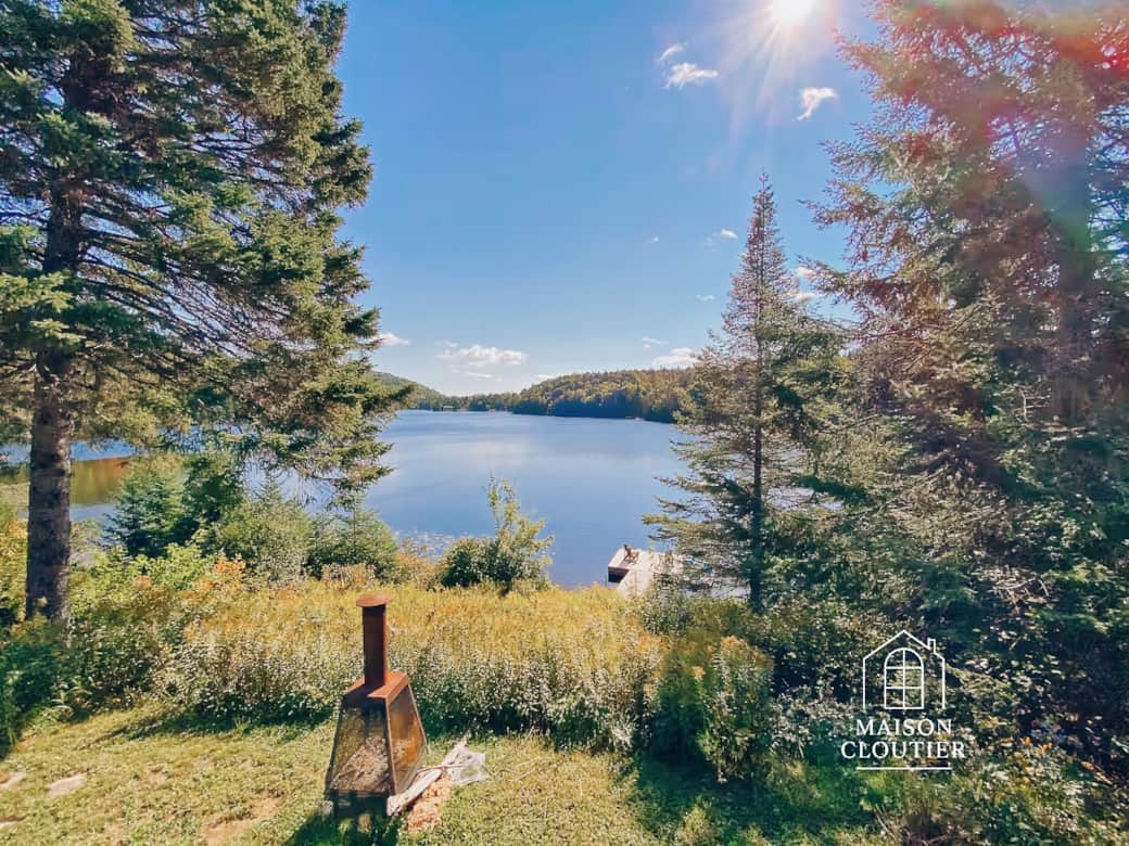 Le cœur du lieu s’anime autour du poêle à bois, véritable centre de gravité des soirées tranquilles. Le salon, ouvert sur le lac grâce à ses grandes fenêtres, baigne dans une lumière douce toute la journée. Un piano attend ceux qui aiment créer, rêver ou simplement laisser la musique accompagner le silence.
