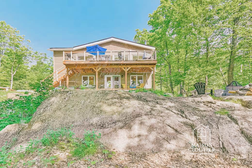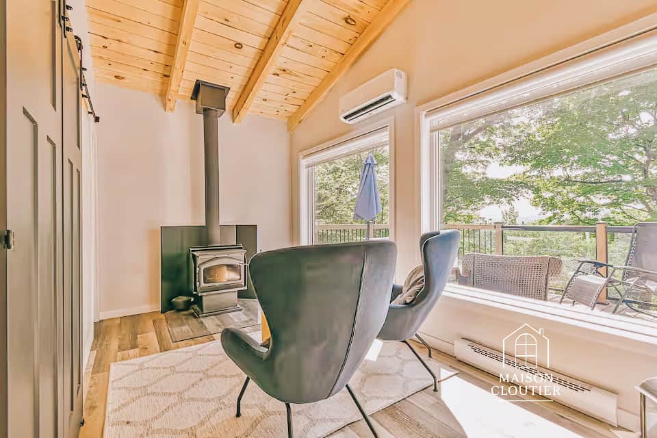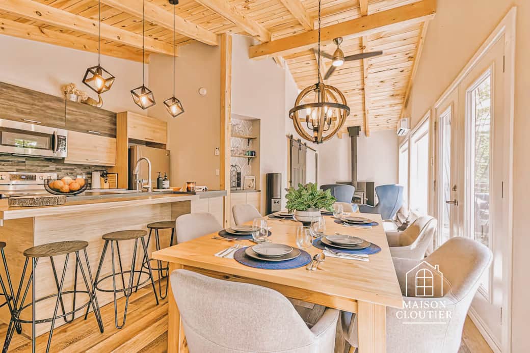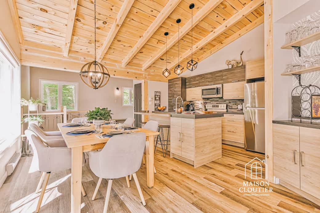 Le Havre des Sommets est un refuge lumineux où la nature, la lumière et la douceur s’unissent pour créer une atmosphère profondément apaisante. Perché au-dessus du lac, entouré d’arbres et offrant une vue ouverte sur les montagnes, le chalet incarne l’art de vivre Maison Cloutier : simple, chaleureux, raffiné.