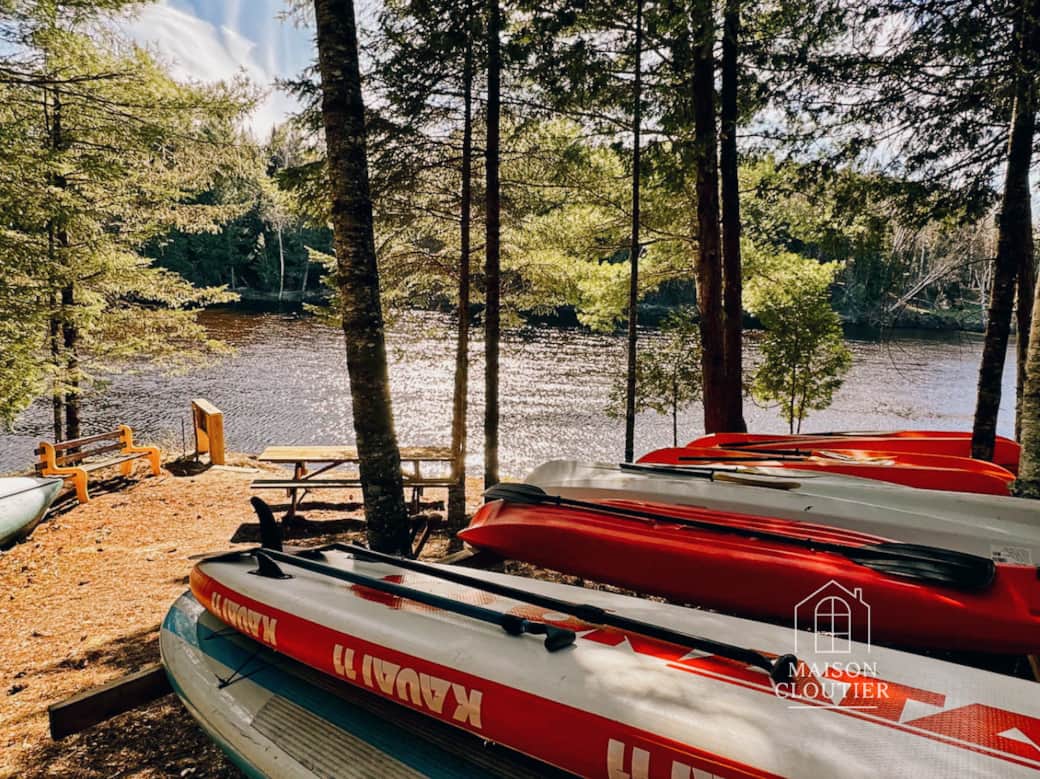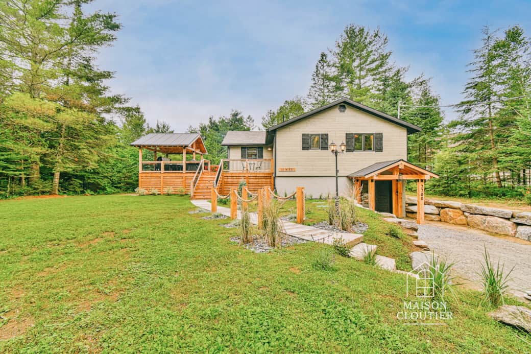 Le Mökki sur la Rivière-Rouge est un refuge niché en retrait de la route, posé directement au bord de l’eau sur un terrain intime de 50 000 pi². Entouré de forêt et de lumière, ce chalet de 2154 pi² réparti sur deux niveau x offre un espace où l’on respire, où l’on ralentit, où l’on se reconnecte.